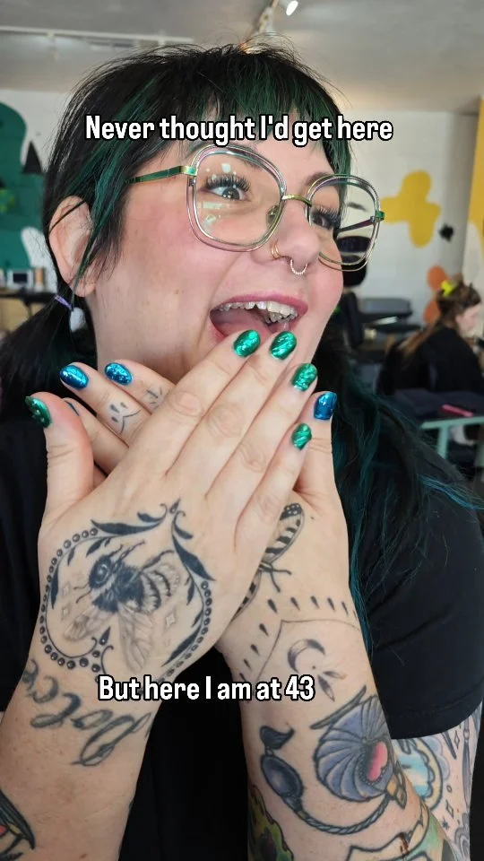 My craft goes beyond surface beauty - I'm here to solve the mysteries of your hair and scalp, speaking truth and sharing ancient wisdom about caring for fine and thinning hair. Knowledge is power, and I'm constantly expanding my grimoire through new classes and techniques because every strand tells a different story. When I'm not brewing color potions with the coven you'll find me at home with my fanily: my partner and husband Van, our tiny human Westley, and our wonderfully chaotic pit bull familiar, Hazel, who keeps our magic grounded in love and laughter.